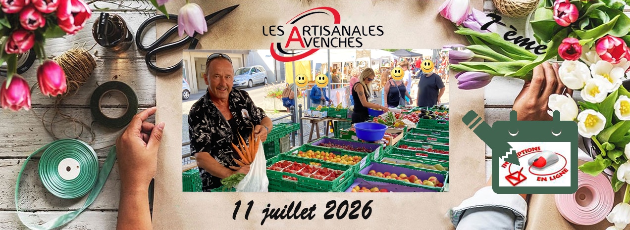 Organisation générale: Jean-Claude Décrevel 079 634 70 48 ou par mail à info(at)les-artisanales-avenches.ch