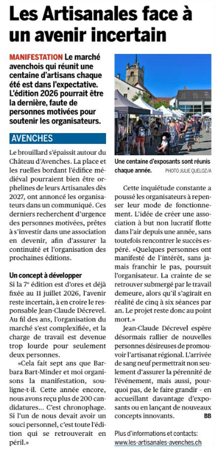 Artisanales d’Avenches 2026